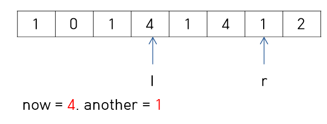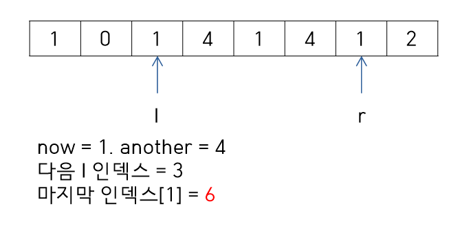 l이 오른쪽으로 한 칸 움직였을 때 another 수는 1임을 저장했으므로 배열의 재탐색없이 알아낼 수 있다.