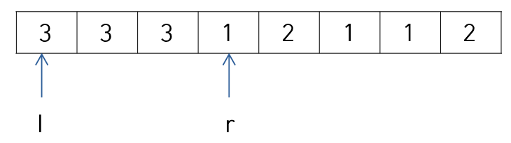인덱스를 가리키는 변수 l(왼쪽), r(오른쪽)을 둔다.