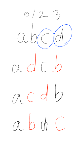 ex) (2, 3) 을 바꾸려면 (1, 3), (1,2) (1,3)을 바꾸면 (2,3)을 바꾼 결과가 된다.