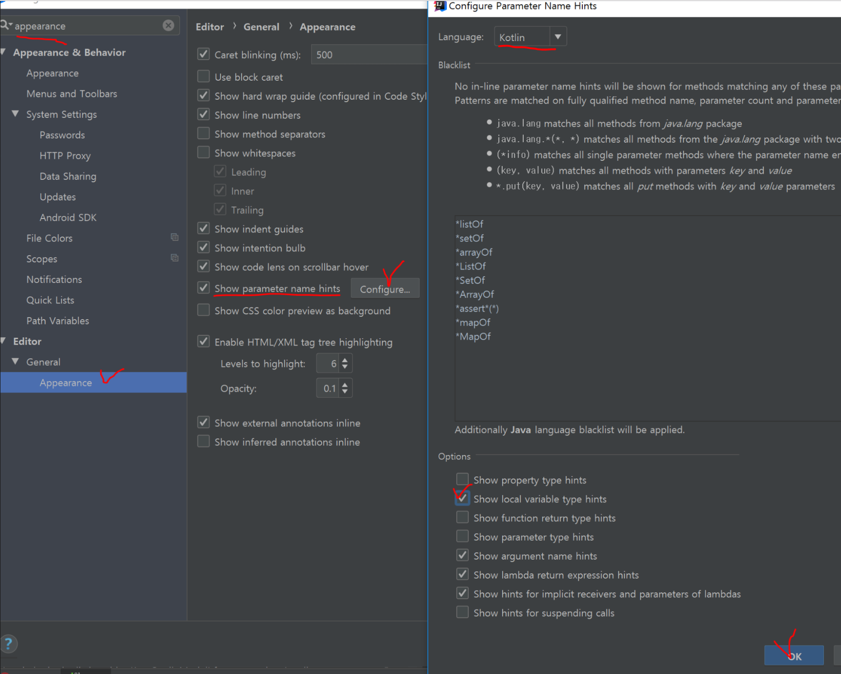 Show parameter name hints > Configure