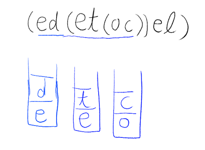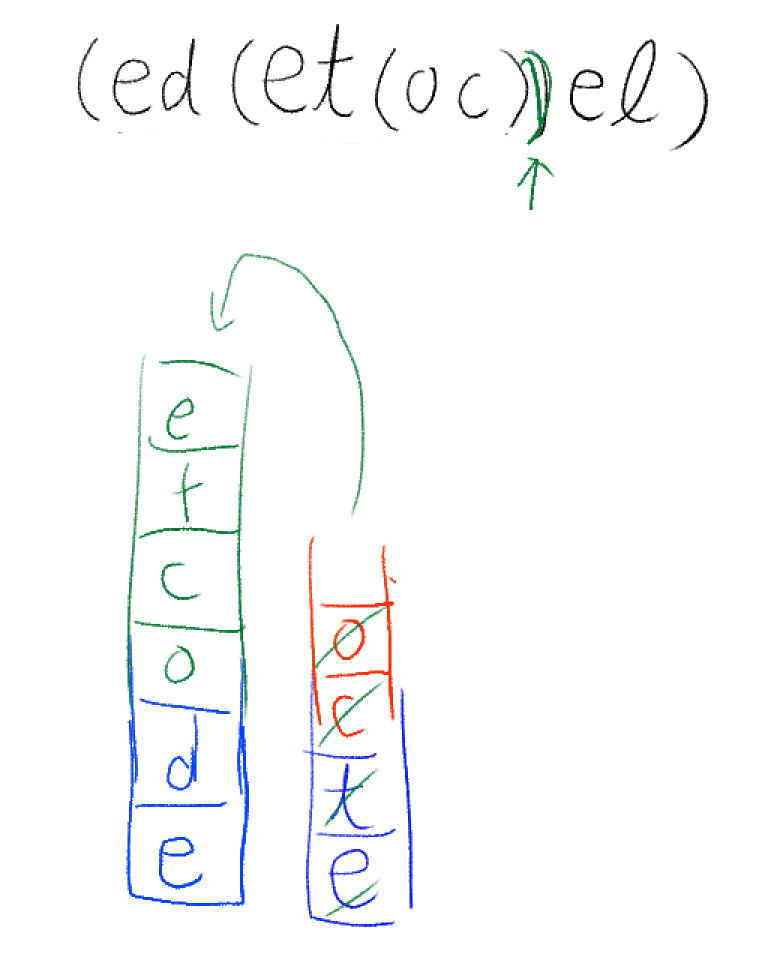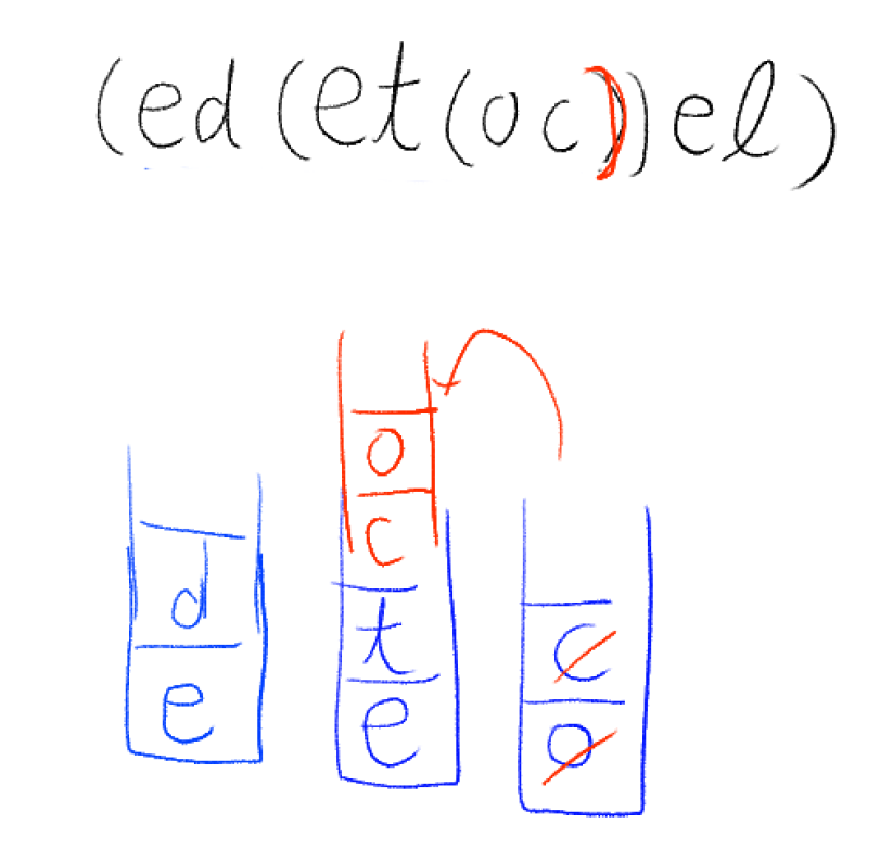 여는 괄호가 시작될때마다 스택을 하나씩 생성해서 이후에 나오는 문자들을 최근 스택에 쌓는다.