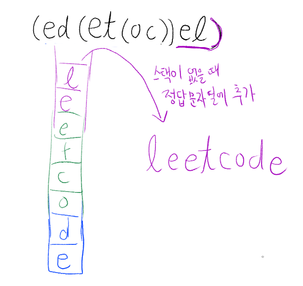 스택이 하나도 없는 경우 문자열 순서에 변경이 없을 것이기 때문에 정답 문자열의 뒤에 추가한다.