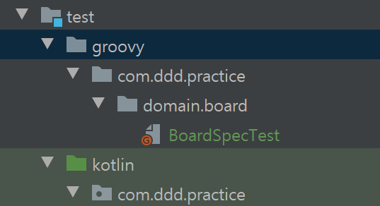 프로젝트 탭을 보면 test/kotlin 은 Test source로 인식이되어 있지만 groovy는 인식이 되지 않았다.