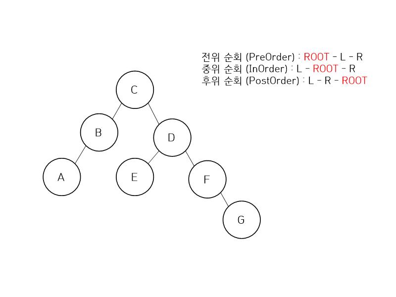 트리 순회에는 전위 순회(preorder), 중위 순회(inorder), 후위 순회(postorder) 가 있습니다.