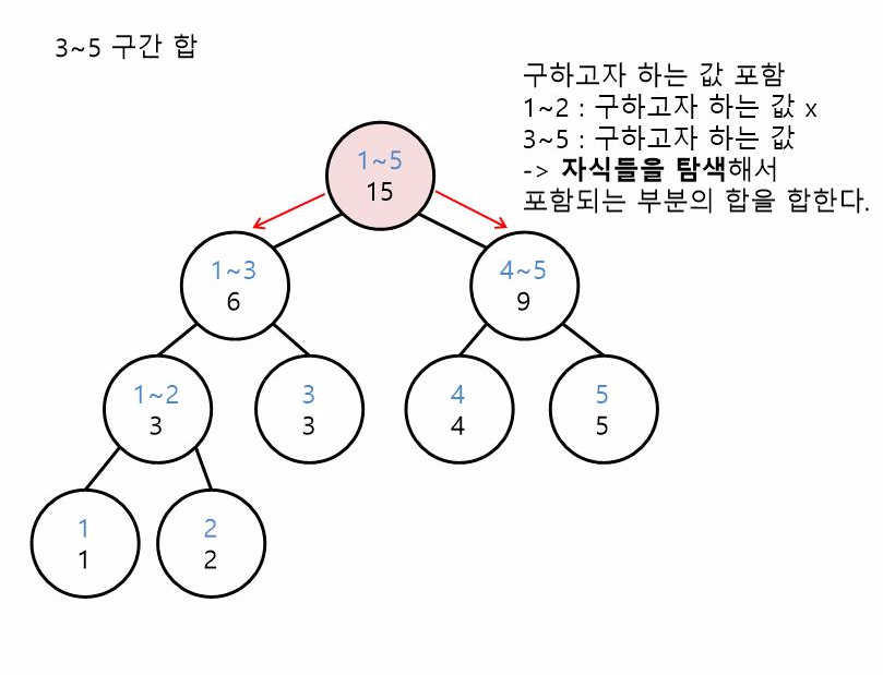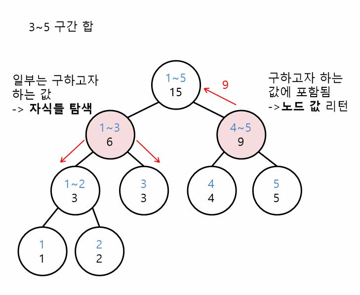 이제 아까 만들었던 세그먼트 트리를 이용해서 3~5 구간 합을 구해봅시다.