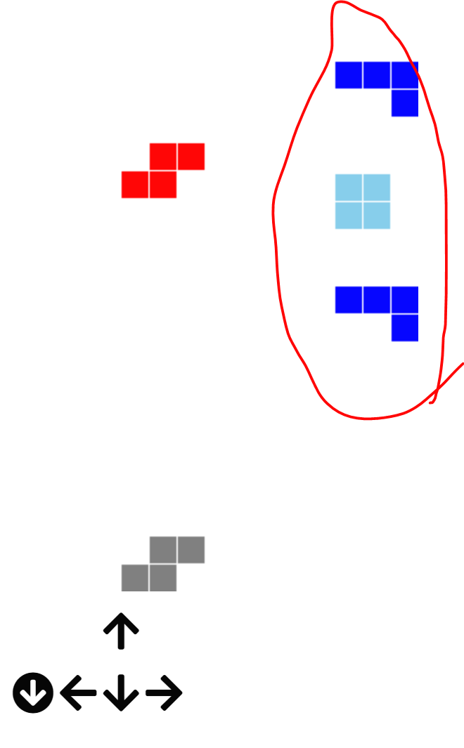 1번째 캡쳐화면에서 ctrl을 눌러서 떨어지고 있는 블럭을 keep 해둔다.