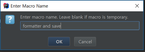 매크로 이름 적어주고 OK.