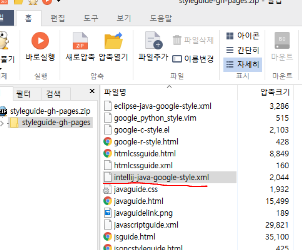 저는 Intellij 용 xml(intellij-java-google-style.xml)만 압축해제 해주었습니다.