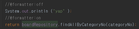 위 주석을 쓰면 이후부터 포매터를 적용한다는 뜻이다.