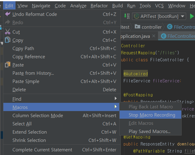 Edit > Macros > Stop Macro Recording
