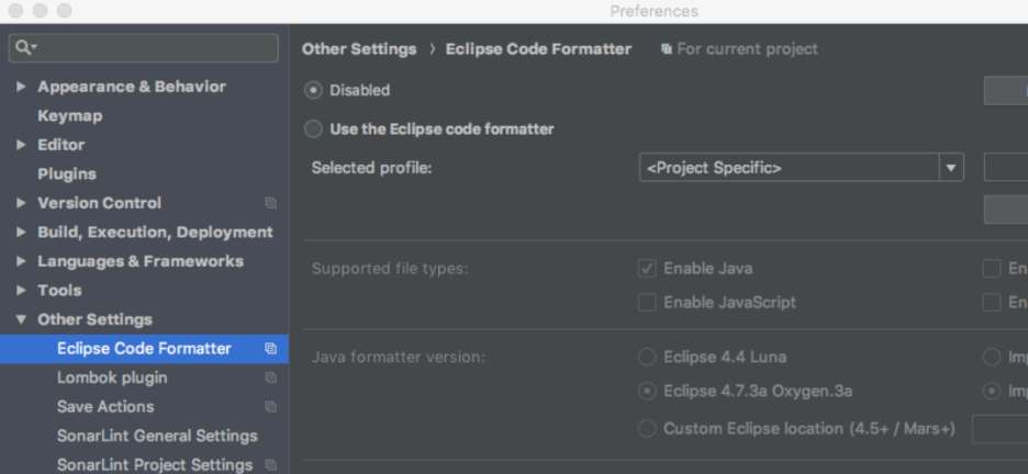 Settings > Other Settings > Eclipse Code Formatter > Use the Eclipse code formatter -> Disabled.