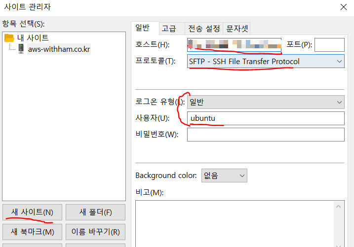 사용자 : ubuntu (서버에 따라 다름. putty 접속시 사용자 이름과 같음 - 참고)