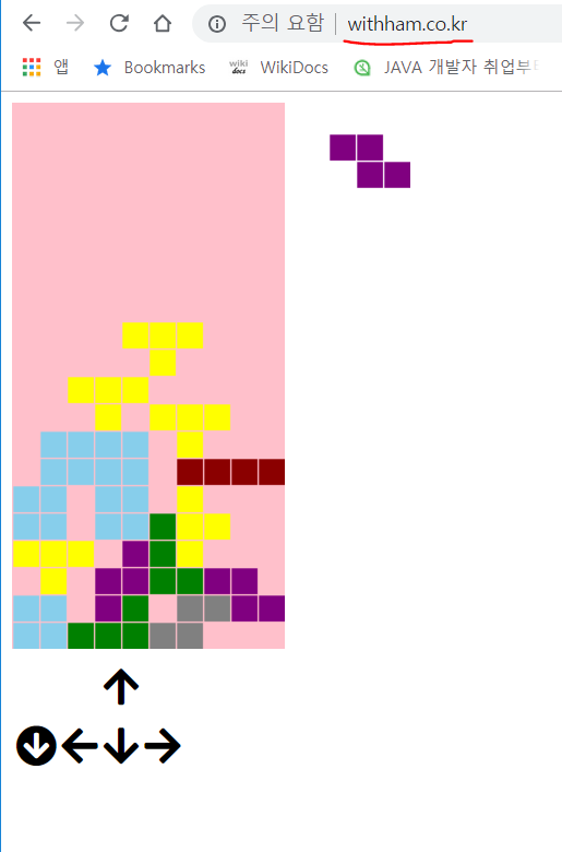 원하는 테트리스 게임(html, css, javascript로 제작)이 뜬다.