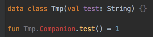 Tmp 클래스에 확장시키려고 하는 Companion 객체가 없기 때문에 발생하는 에러다.