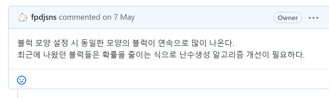 이렇게 하면 겹치는 블럭이 연속으로 3개 등장하지 않을 뿐더러 다음에 나올 블럭도 예상할 수 있어 더 전략적으로 플레이 가능하다.