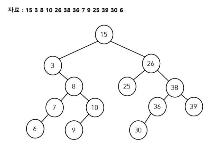 자료 : 15 3 8 10 26 38 36 7 9 25 39 30 6
