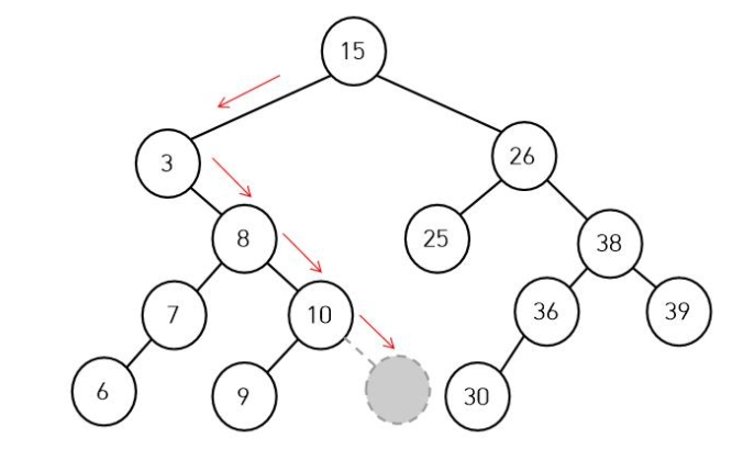 8은 15보다 작으므로 왼쪽 자식으로 내려갑니다.