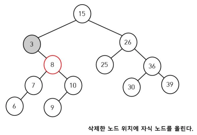 삭제한 노드 위치를 삭제한 노드의 자식 노드로 대체합니다.
