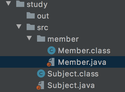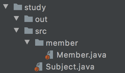 Member, Subject 자바 파일을 만들고 위와 같은 폴더 구조를 가진다고 하자. (out 폴더는 비어있음)