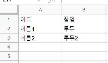 웹으로 볼때는 구글시트로 볼라고 google spread sheet 를 디비 대용으로 사용할거다.