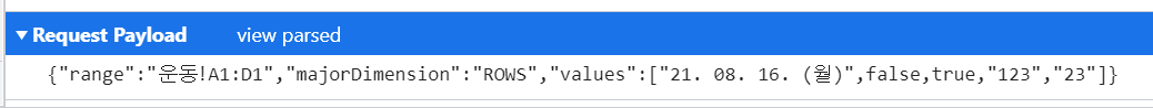 구글 시트 엑셀 api 문서 를 보고 api 통신용 코드를 위와 같이 추가.
