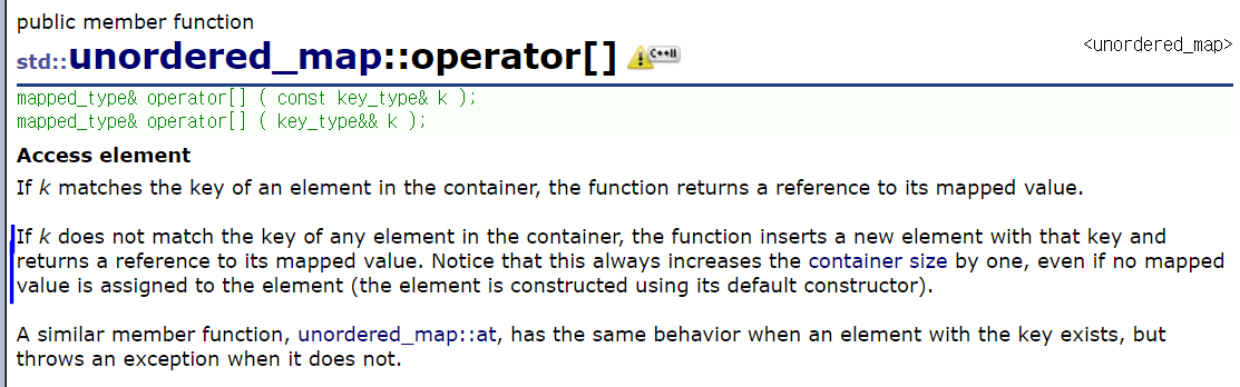 unordered_map []에 대한 reference를 찾아보았다.