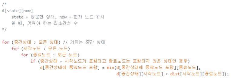 d[모든 노드를 포함한 상태][0~노드 수] 에서 가장 작은 경우가 정답이 된다.