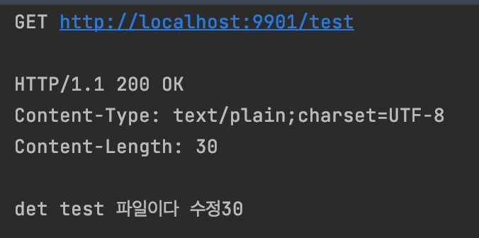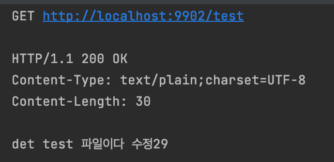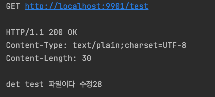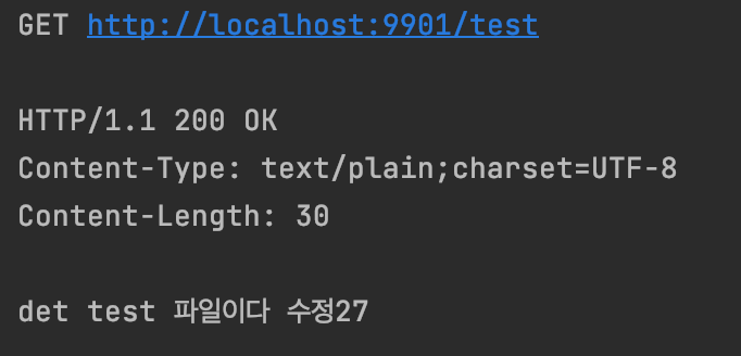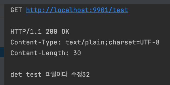 client server 재시작 없이 /actuator/refresh 호출 후, test endpoint 를 호출해보면