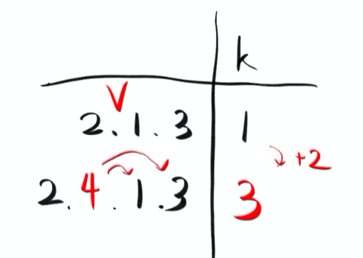 예를 들어보자. [그림 2] 에서 [2, 1, 3] 리스트에서 뒤에서 두 번째 위치에 4를 넣어 [2, 4, 1, 3] 리스트를 만들어보자.
