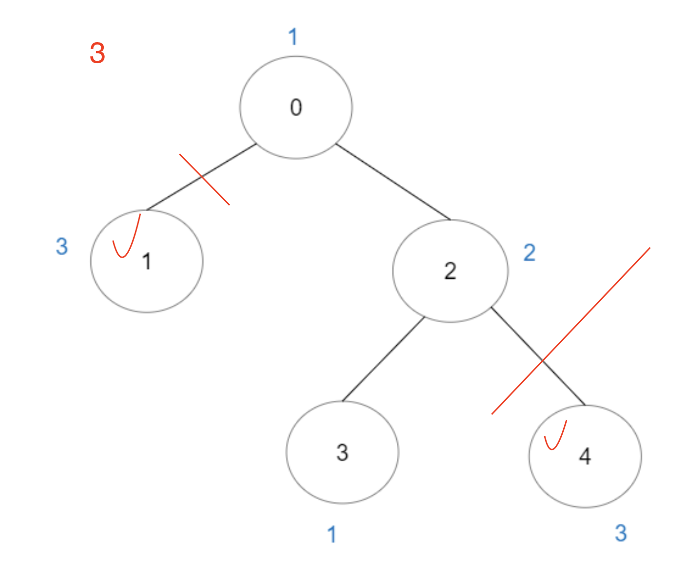그러면 마지막엔 [그림 3]처럼 되고 0번 노드와 3번 노드는 서로 다른 그룹안에 있으므로 이동할 경로가 없어서 정답에 포함될 수 없다.
