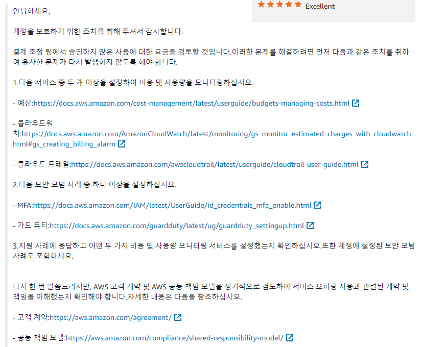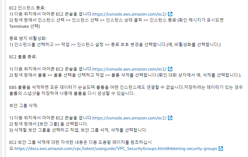대처 방법은 EC2 인스턴스 종료. 볼륨 삭제. 보안그룹 삭제.