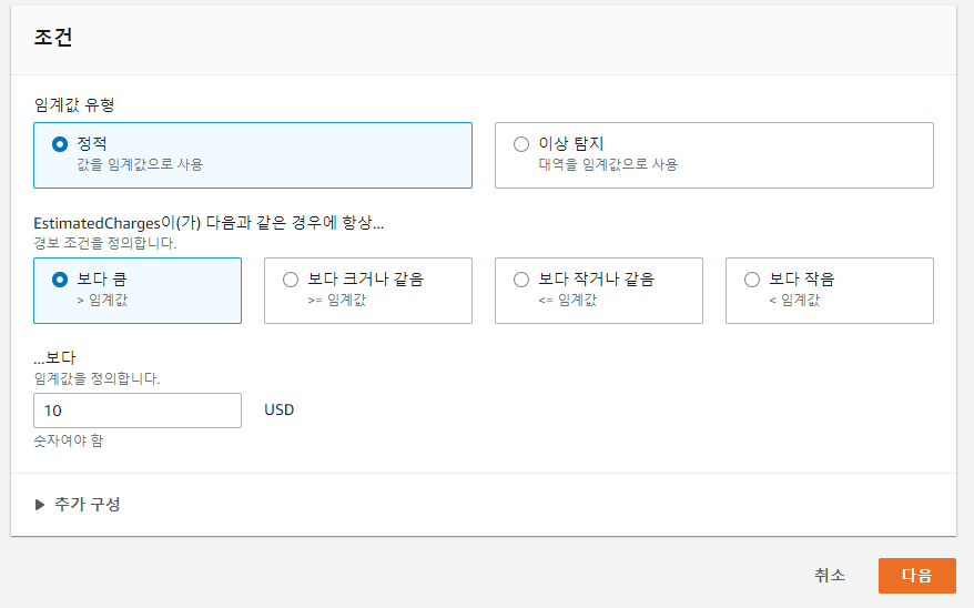 "...보다" 에는 원하는 값을 적었다. 일단 잦 최소라고 생각하는 금액을 적었다.