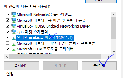 인터넷 프로토콜 버전 4(TCP/IPv4) > 속성